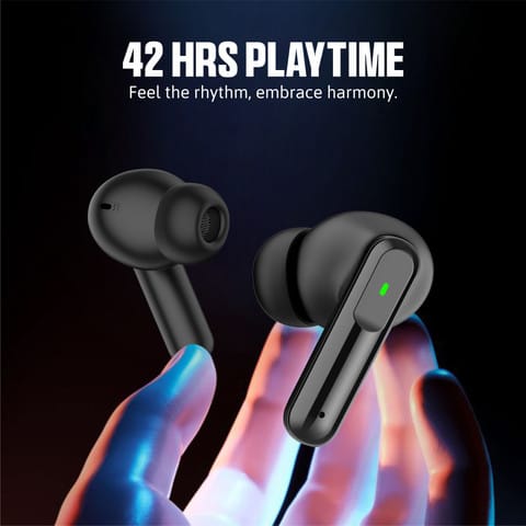 Trendy ANC Gaming earbuds which comes with 50 hour Battery Backup and high Quality Design with Deep Bass sound with Gaming Chipset With cooper speaker and matel Ears or Type C fast charge or Vibration on calls and notifications Feature and Water or Dust proof